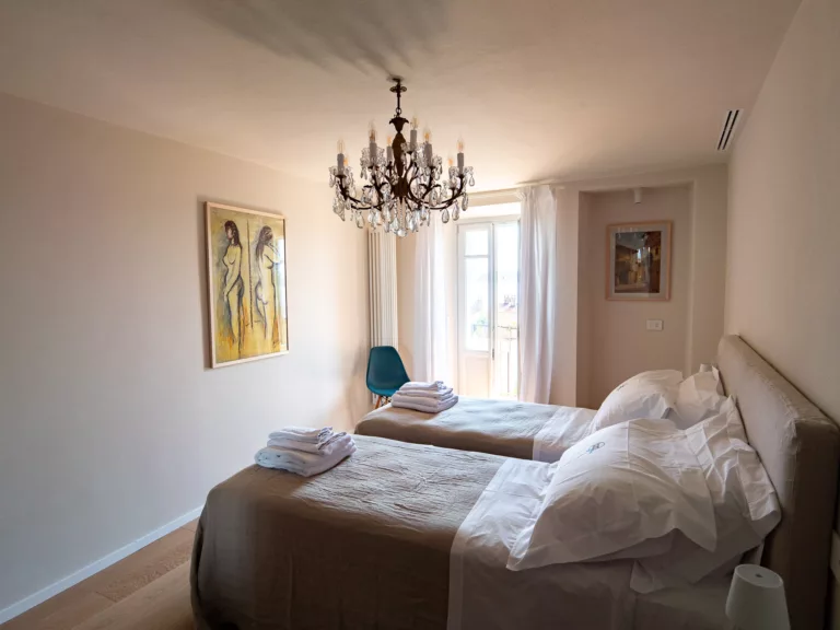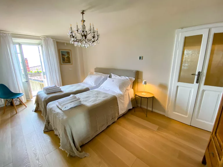 2 bedrooms, 2 bathrooms, living room, kitchen and two balconies with panoramic views of Lake Maggiore and the poetry of Belgirate’s rooftops.